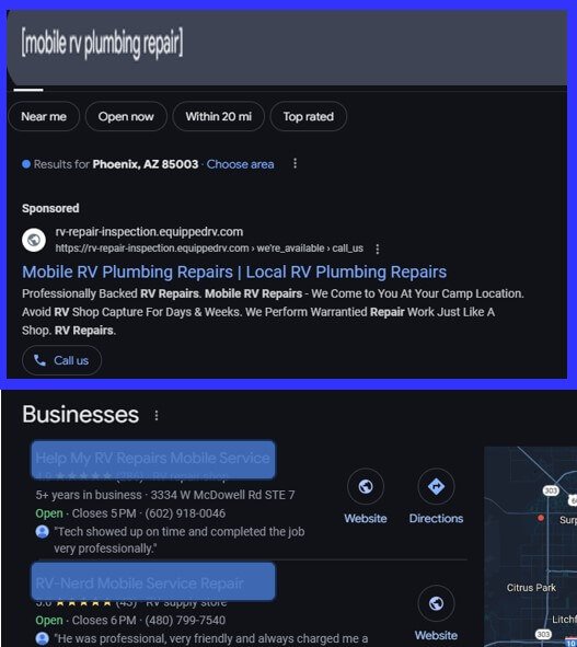 So, if this sound enticing, let’s talk about how you can own the top of Google’s “RV Tech & Inspection service” search results and get the full attention of RV owners & buyers looking to pay for your services right now.